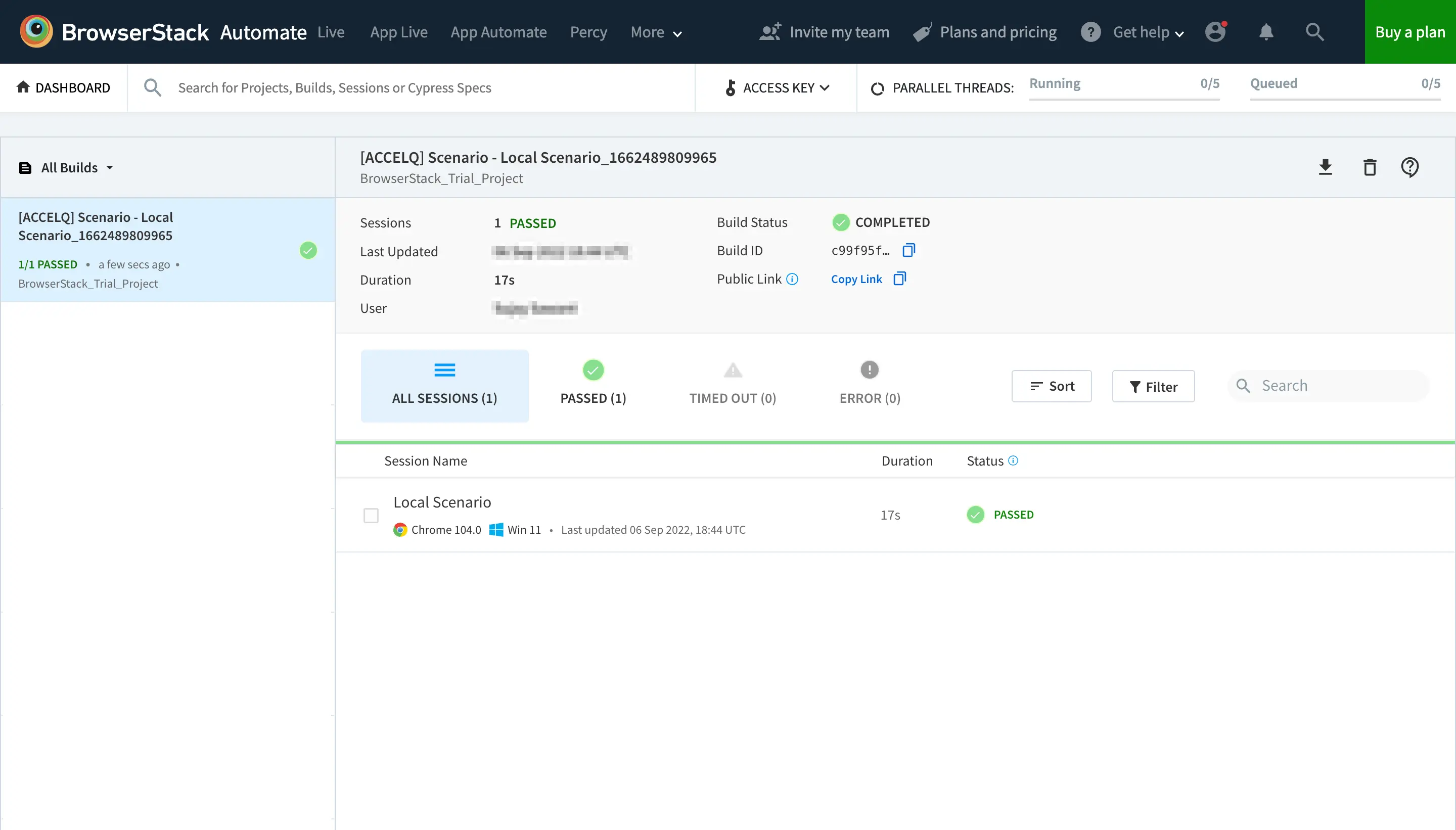 You can see the execution of your scenario with multiple tests running in parallel on the Automate dashboard.