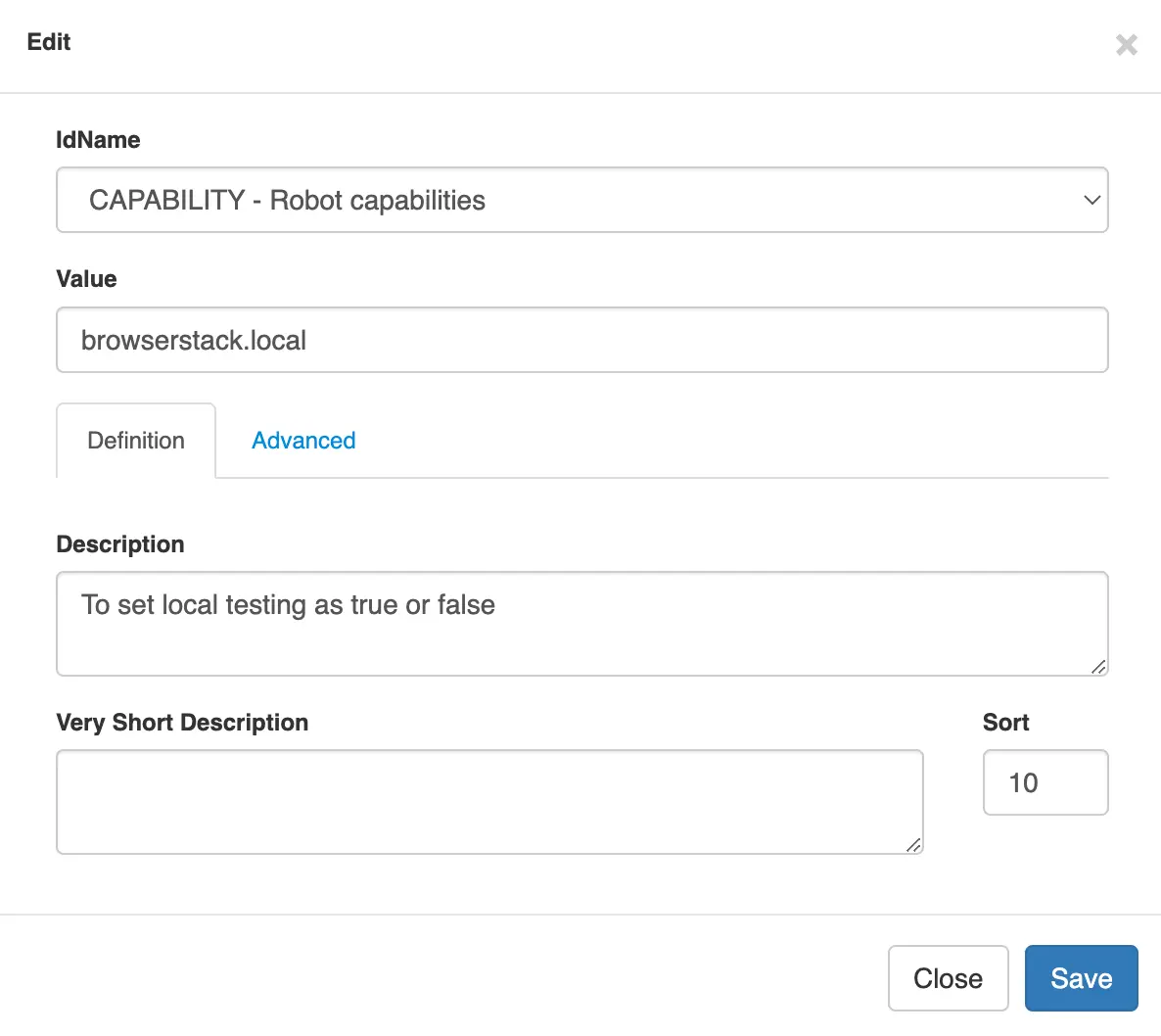 - From the drop-down, select browserstack.local you added in this section, and set the value as true.