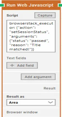 browserstack_executor: {"action": "setSessionStatus", "arguments": {"status": "<Test Status>", "reason": "<Reason>"}}