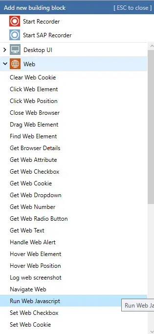 Ensure that the Close Web Browser building block is added at the end of the test flow.