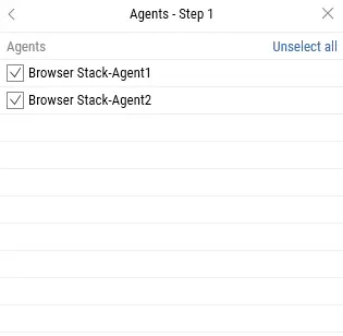 Step 7. Under Agents, select all the instances of BrowserStack Agents that you created earlier in step 1.