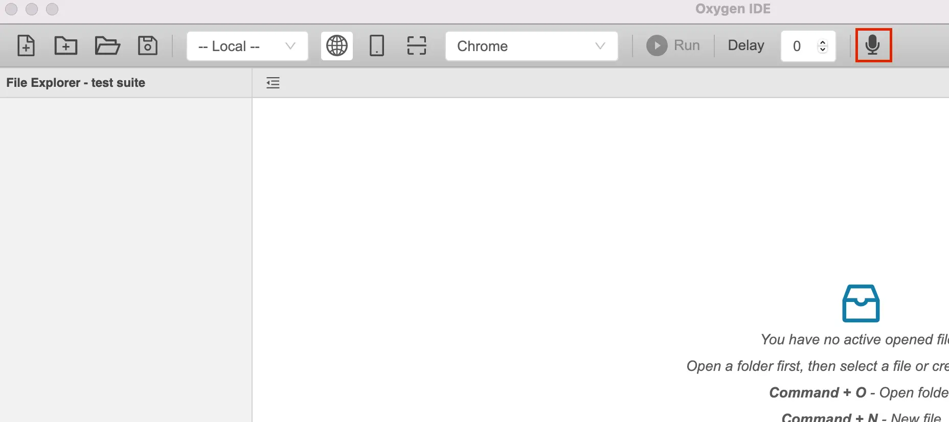 Switch to the Oxygen IDE, and click the Recording icon again to stop the test recording.