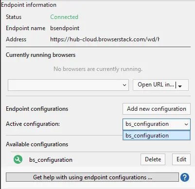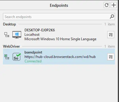 To run the test suite on Selenium Grid offered by BrowserStack, add the BrowserStack endpoint by selecting the Endpoints from View tab: