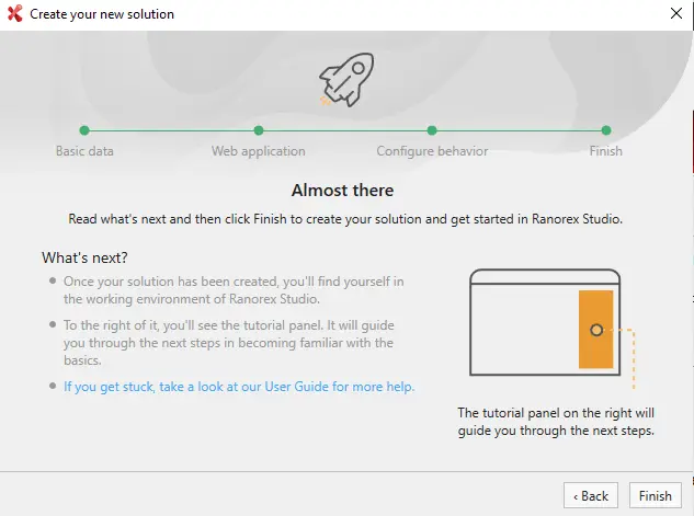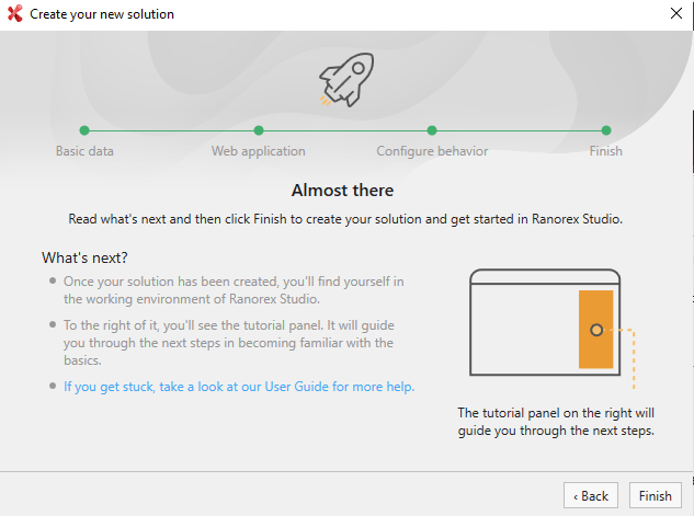 Select Finish to complete creating of solution.