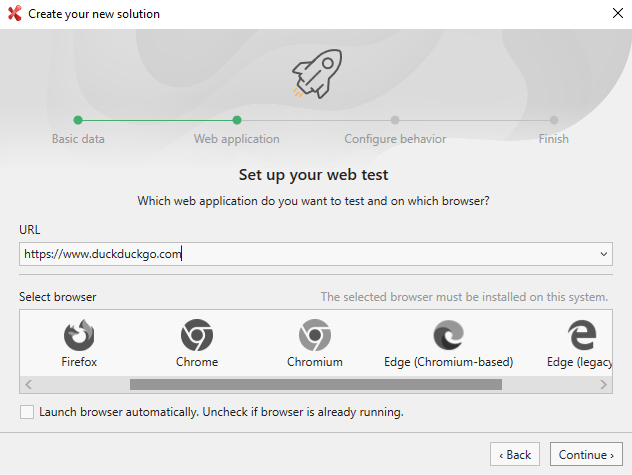 Select Web to test over different browsers.