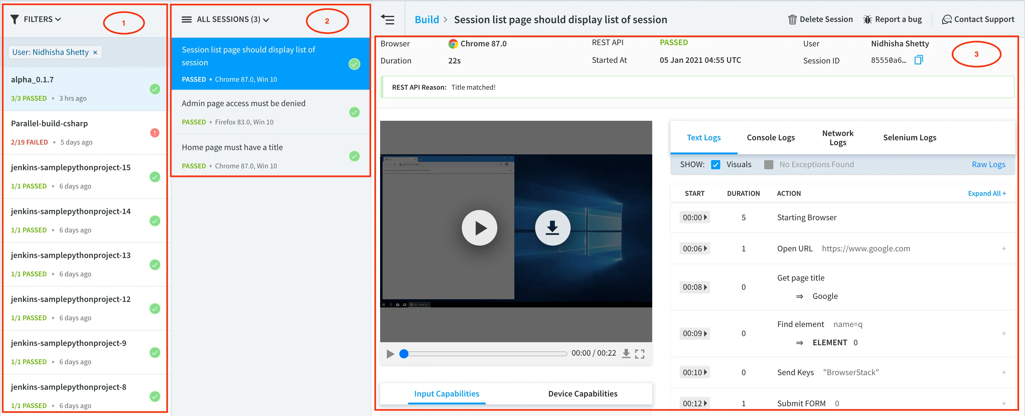 If you use the build capability, you will find the execution of tests within the build on the BrowserStack Automate dashboard, as shown in the following figure. Also, it becomes very easy to find your tests within the build.