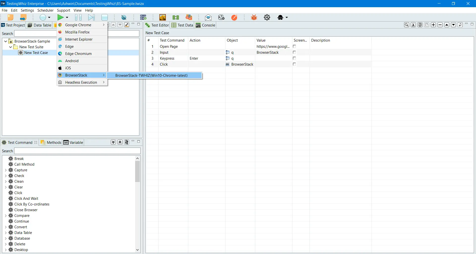 A step-by-step guide to running TestingWhiz tests with BrowserStack Automate