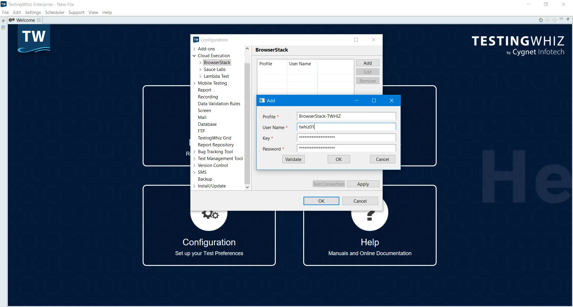 - Configure BrowserStack in TestingWhiz