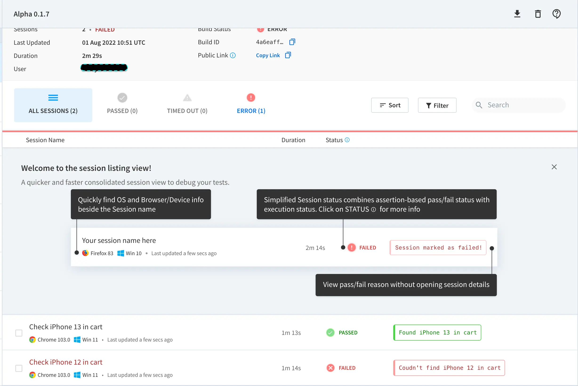 For example, if you are working on your new e-commerce website and want to run your test namedCheck iPhone 12 in cartfor theAlpha 0.1.7build, you can pass the additional capabilities, as shown in the following image: