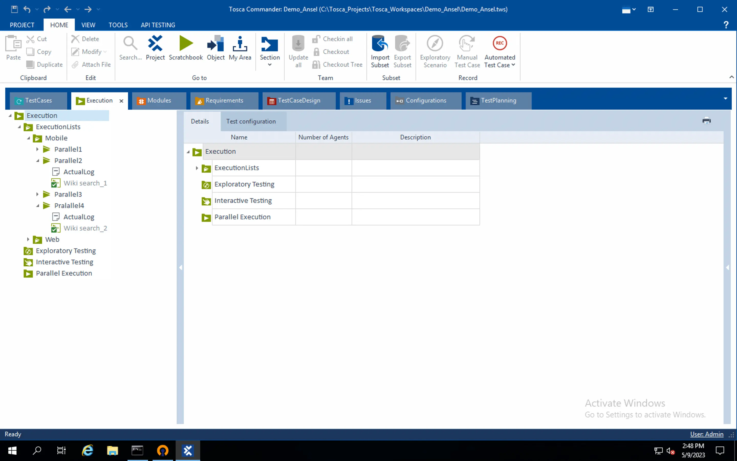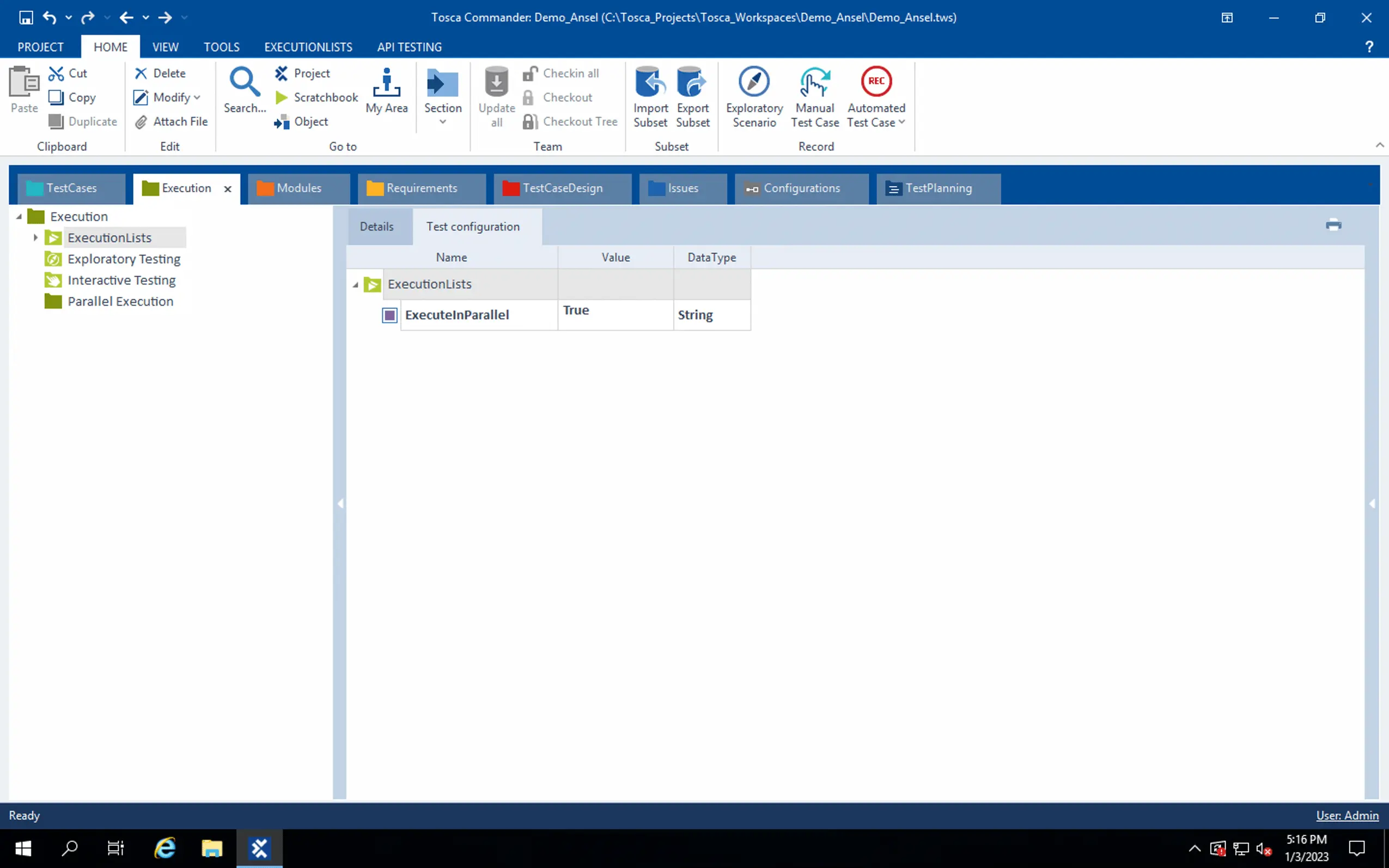 Click the Execution Tab. On the ExecutionLists folder, add the test configuration parameter ExecuteInParallel and set its value to