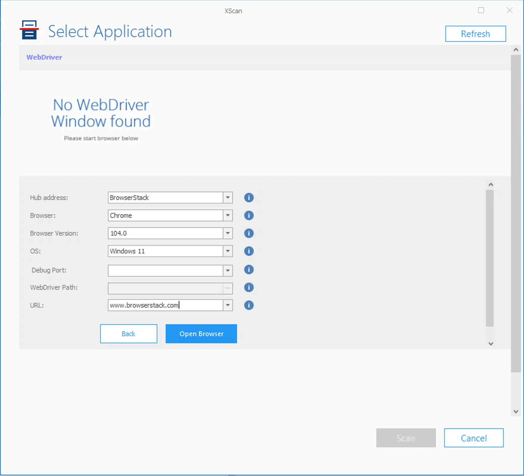 When you see the following screen, you can scan your application on BrowserStack cloud devices.