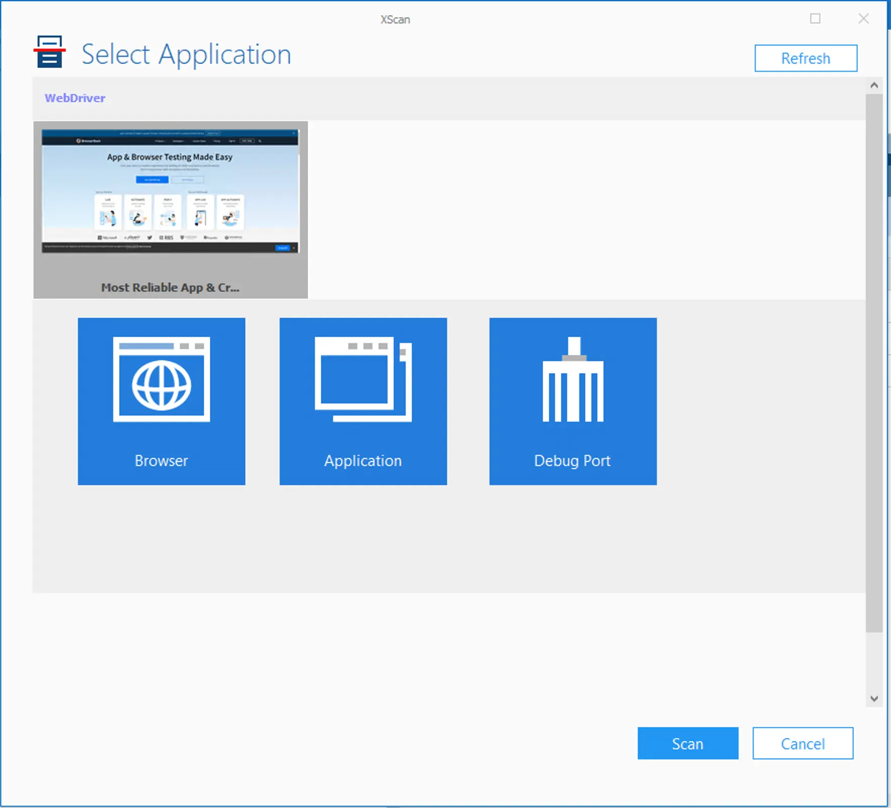 Select the window you want to scan and click the Scan button to start scanning the application.