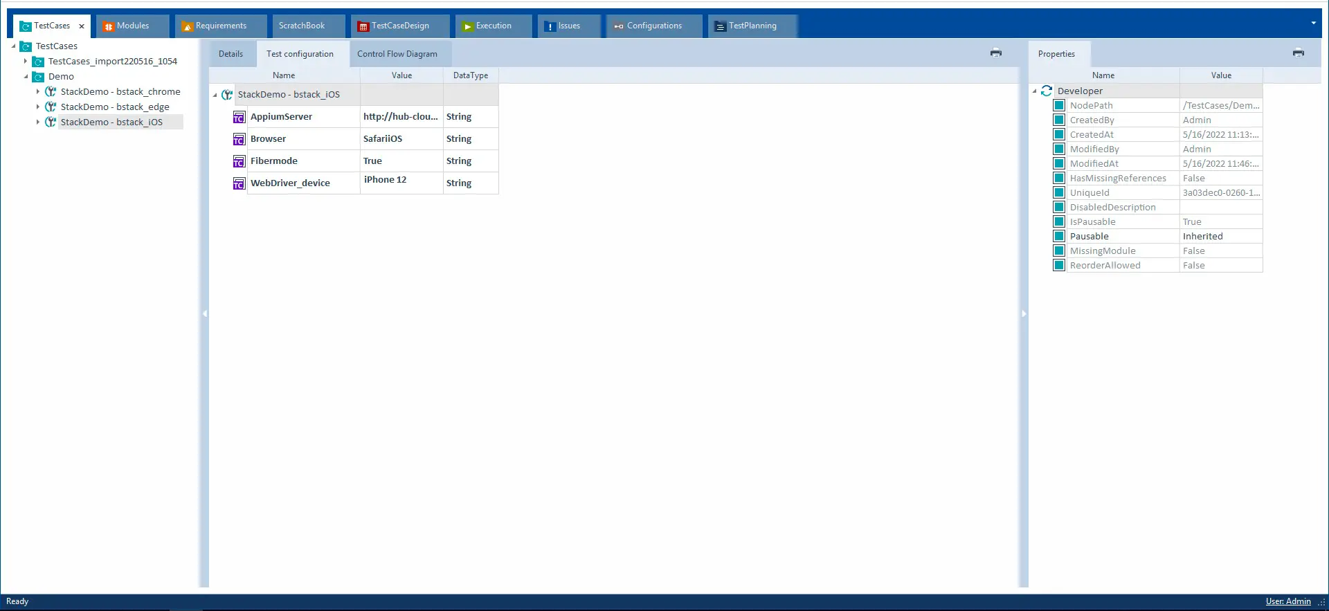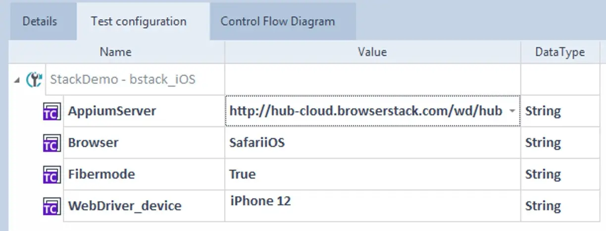 .’ need to be replaced by a double underscore ‘__’. More details are available on the Tricentis documentation page. For example, useWebdriver_browserstack__localinstead ofbrowserstack.local. - To improve performance, set Fibermode as