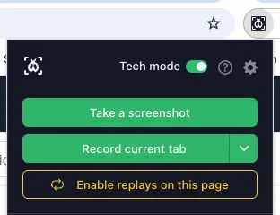 - Click the Bug Capture extension and then click the Record current tab button to start a recording.