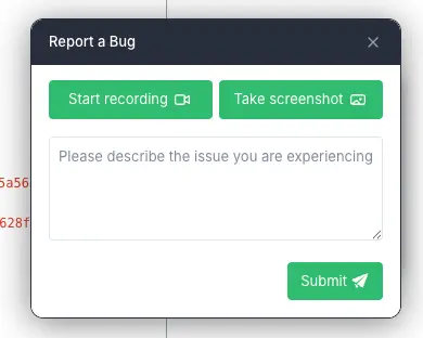 - Finally, add any additional information such as a description of the bug, and then click Submit to upload your recording.