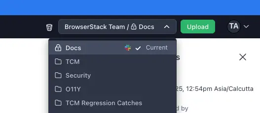 When uploading a bug report from the browser extension, the folder selection popup will also indicate whether there is an automation trigger attached to the folder. For example, in this screenshot, uploading to the “Docs” folder will automatically send a notification to a Slack channel.