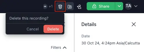 To delete a recording, click the trash can button in the top-right.