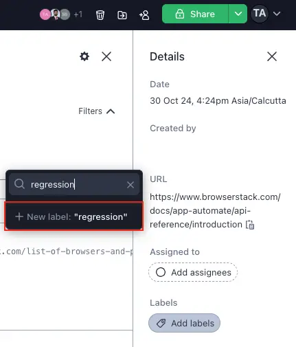 You can also create new labels from directly in the bug report. Type in the desired label in the search input, and if it doesn’t already exist, you can create one directly.