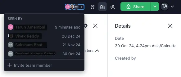 Every unique view of your recording is displayed here, so you can easily check who and when someone viewed your bug report. Click the views tracker to see more details of the viewers.