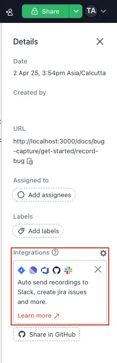 - Send it to another app with integrations. For example, create a Jira issue directly from Bug Capture.