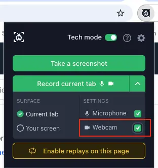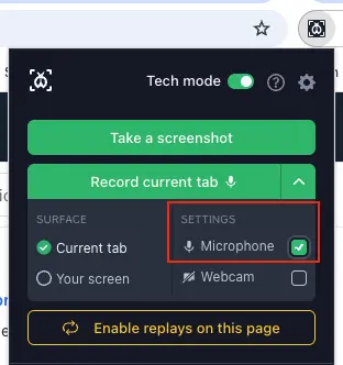 The Bug Capture browser extension offers several options for an enhanced recording experience: