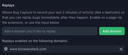 Replays turns Bug Capture into a dashcam for bugs, allowing the extension to constantly record the last 2 minutes of your activity in the background; so if a bug happens, you can instantly replay the bug and share it with engineers.