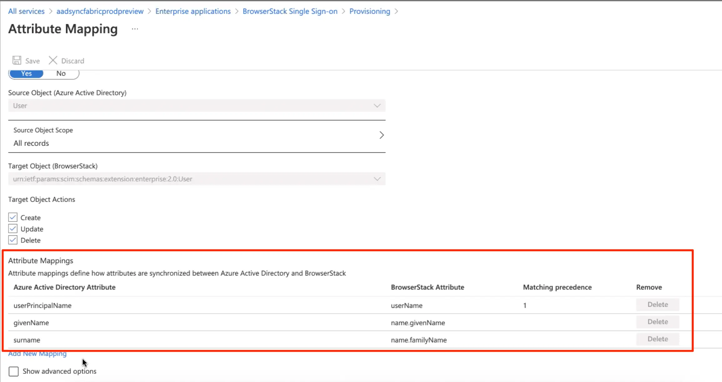- There will be default attributes visible under Attribute Mappings. These attribute-mappings are mandatory ( e.g.
