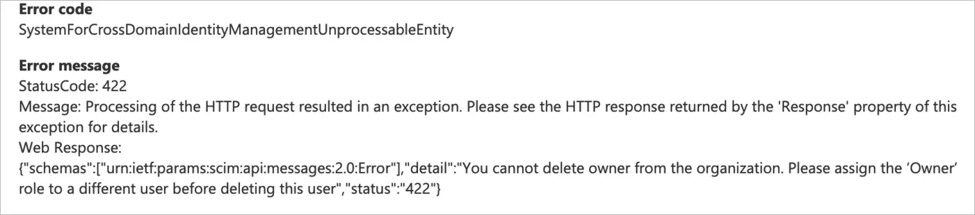 Resolution: You are assigning incompatible user attributes, for example Owner cannot have a team assigned.