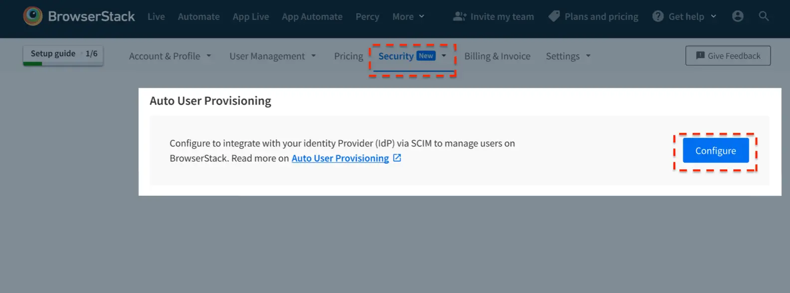 - User with Owner permissions can setup user provisioning on BrowserStack.