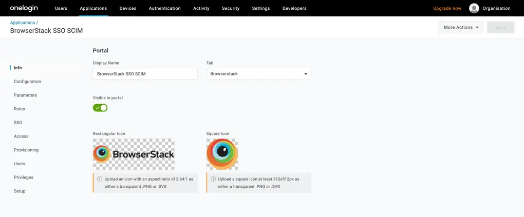 - Head to BrowserStack App on OneLogin, and go to the Configuration tab.