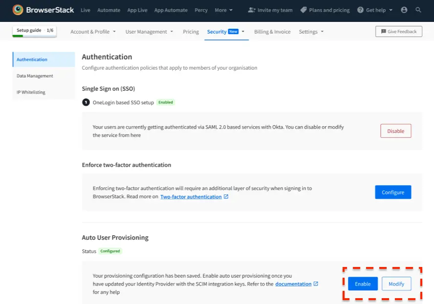 - On BrowserStack, enable Auto User Provisioning once you have set it up on OneLogin, otherwise, you will be locked out of inviting new users via BrowserStack UI.