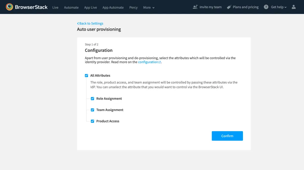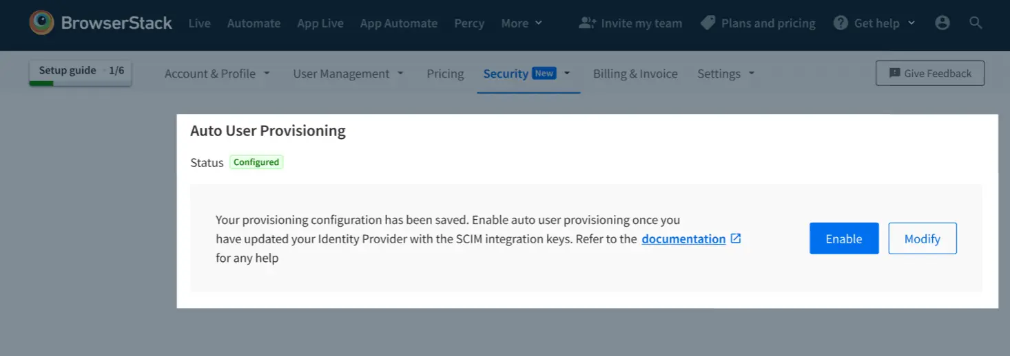 - User with Owner permissions can setup user provisioning on BrowserStack.