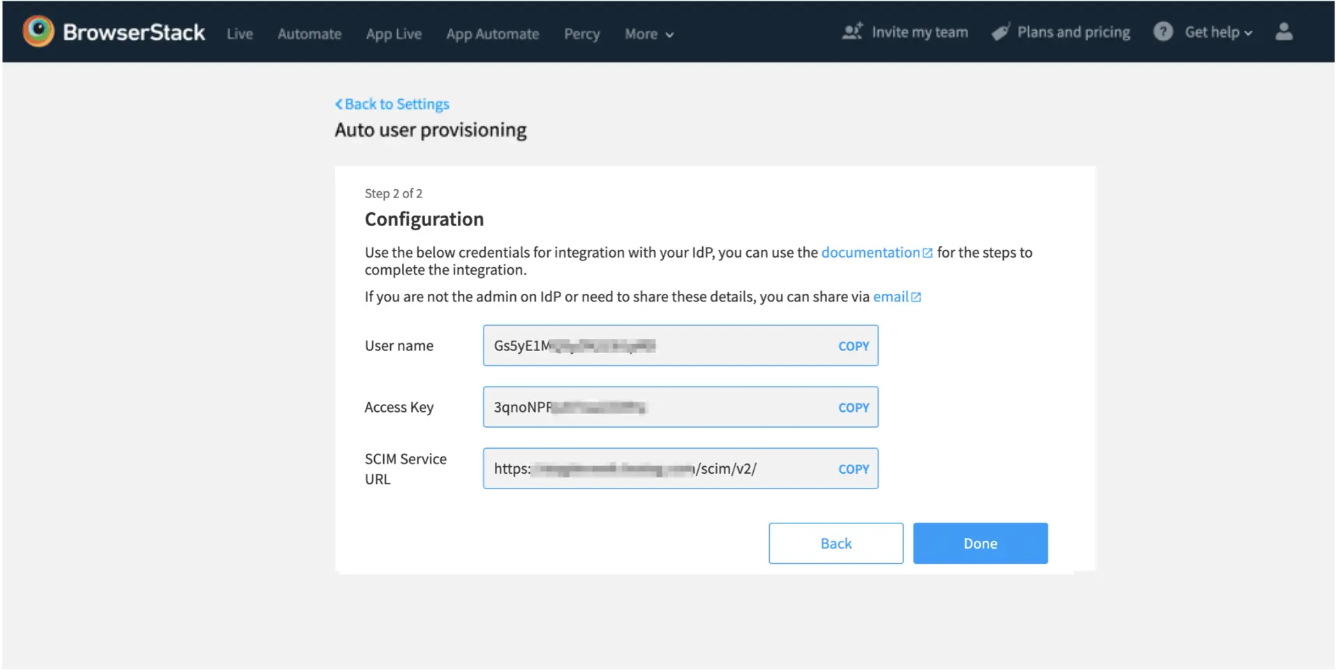 SCIM Base URL: The SCIM URL of BrowserStack server