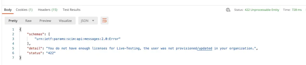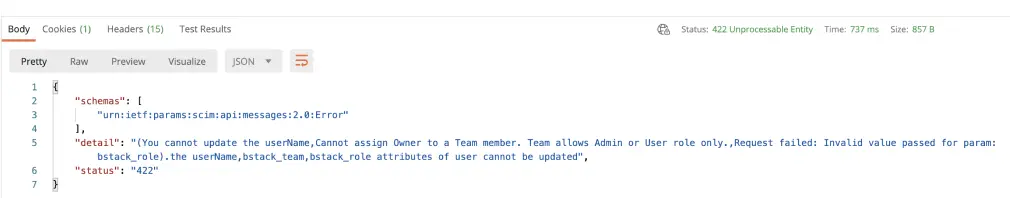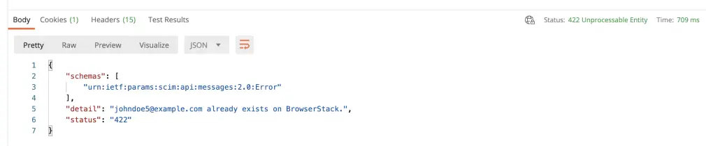 Resolution: User already presents on BrowserStack under a different organization, please get the account deleted before provisioning the user.