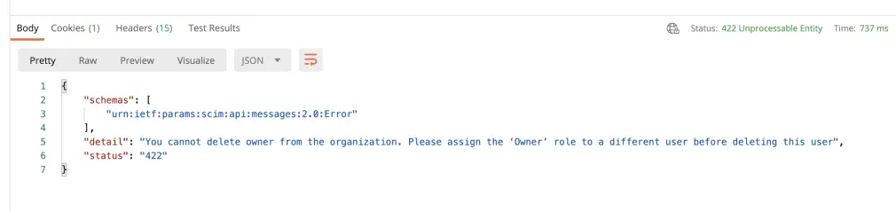 Resolution: Assign ownership to a different user before deletion of this user. The owner cannot be deleted, BrowserStack account needs a user to have Owner role assigned.