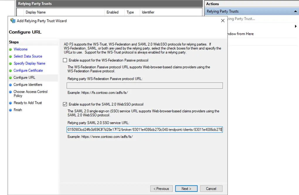 - Check Enable support for the SAML 2.0 WEB SSO Protocol