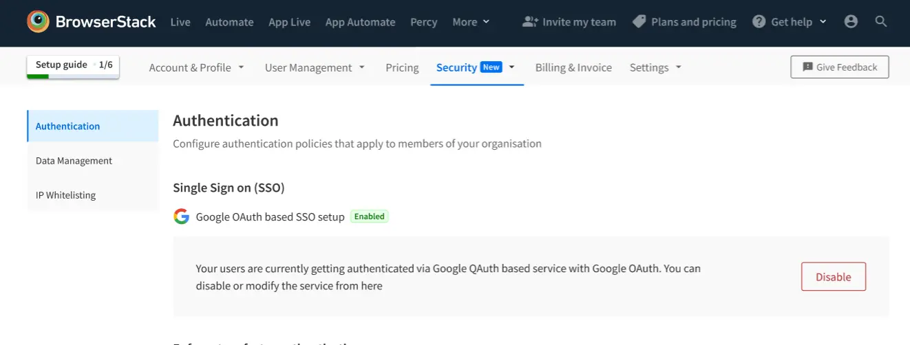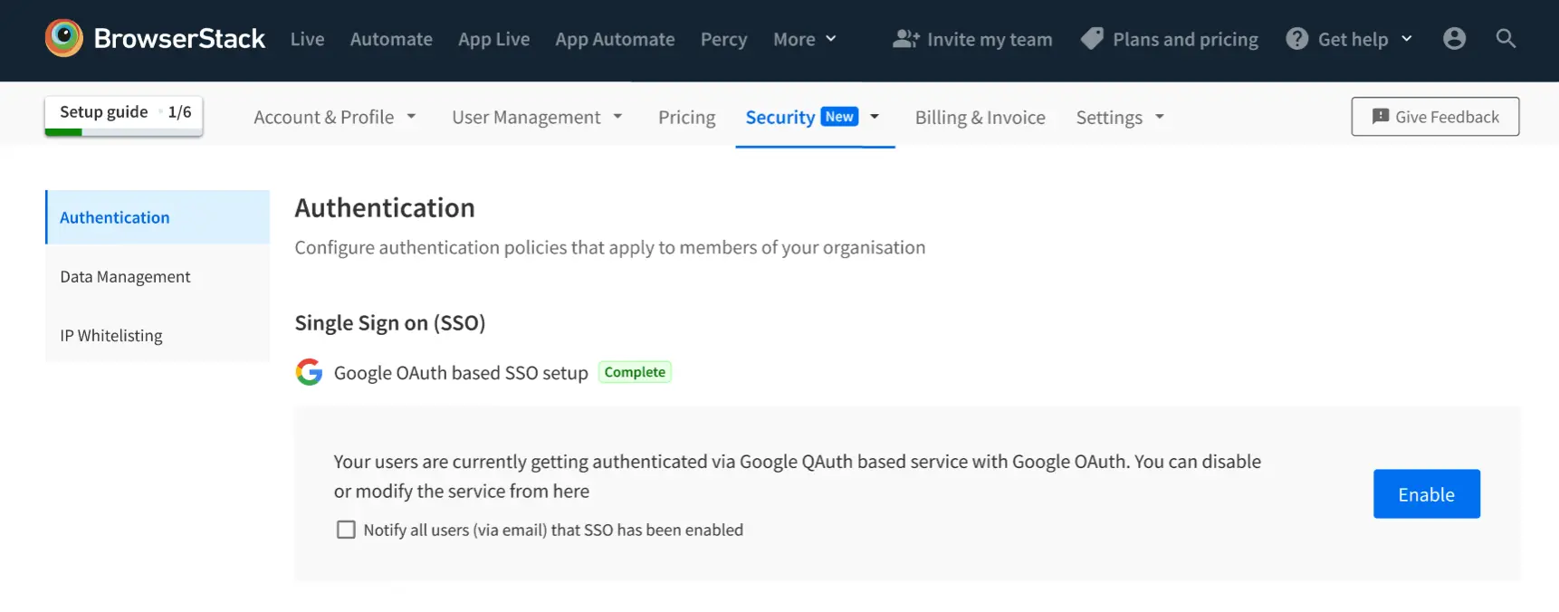 Integrate Google OAuth with BrowserStack to set up Single Sign-On.