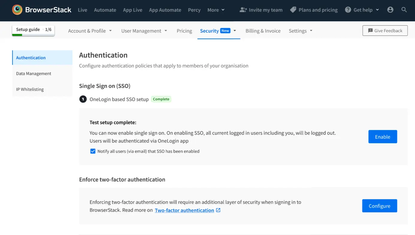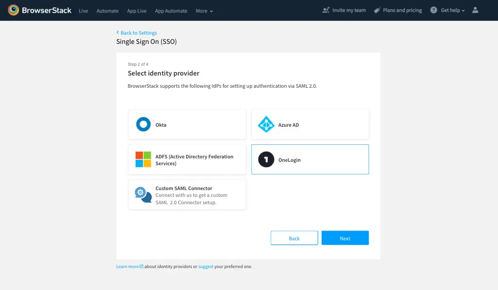 Integrate your OneLogin directory with BrowserStack to set up Single Sign-On.