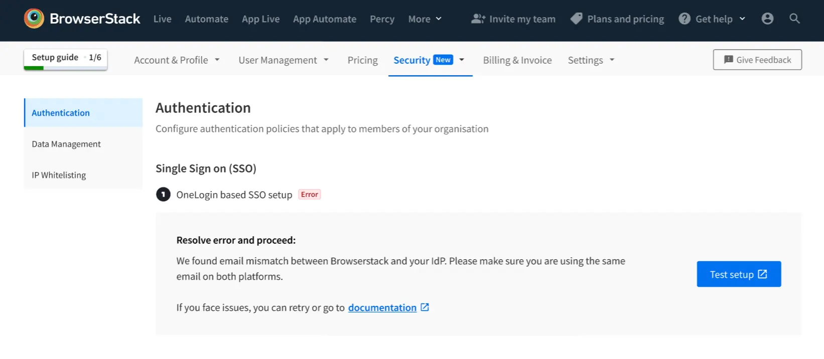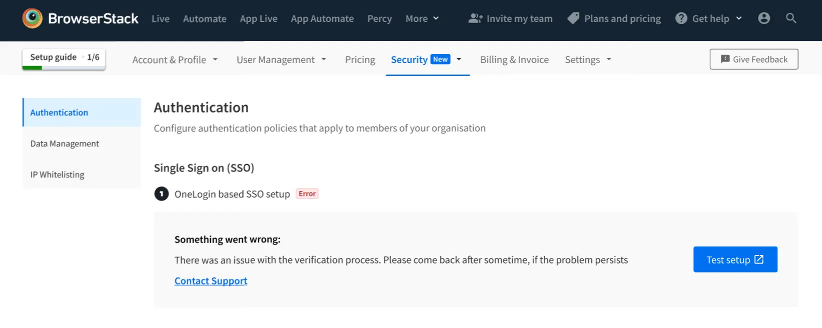 - By default, a user account with Owner permissions can setup SSO on BrowserStack.