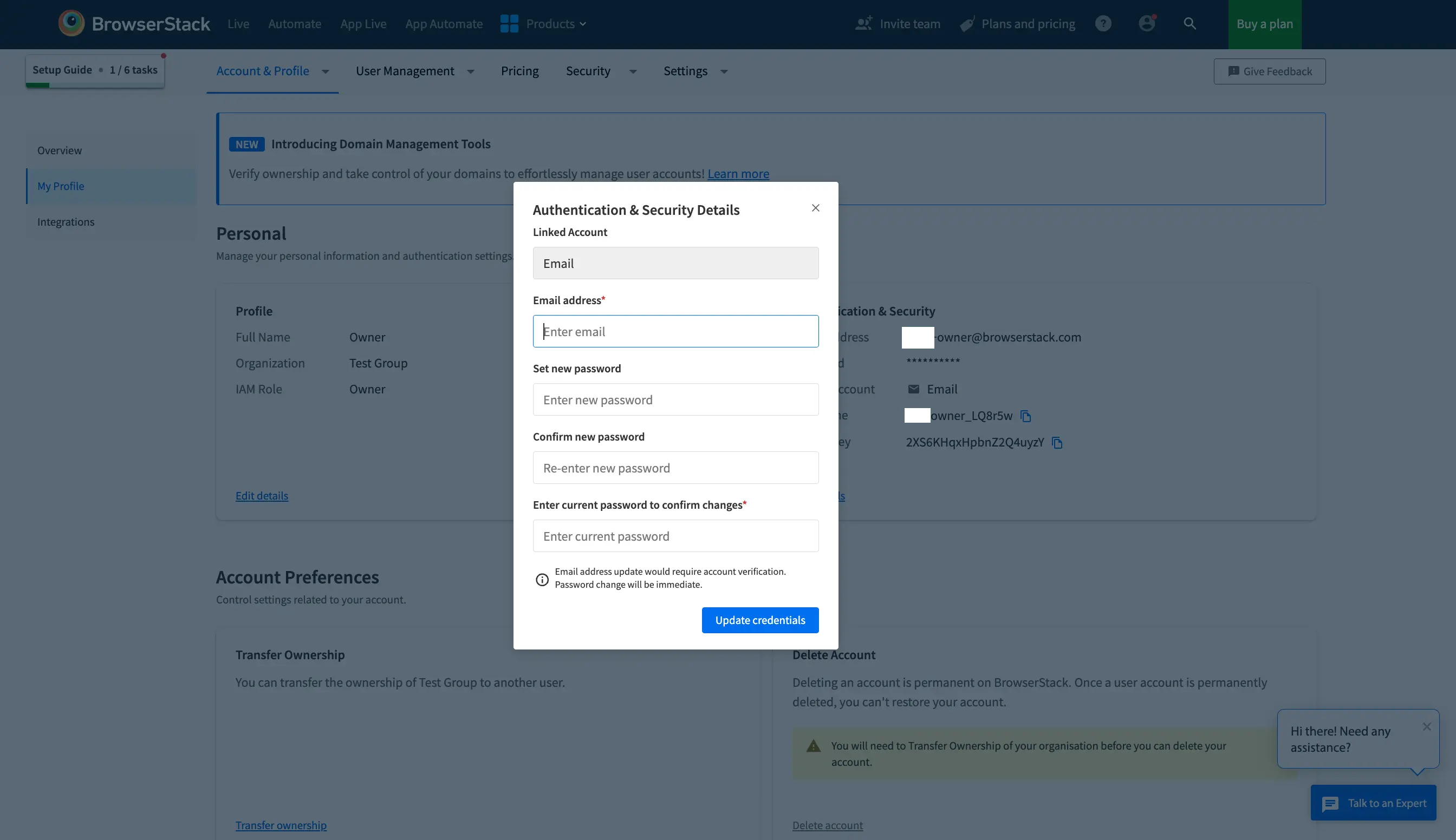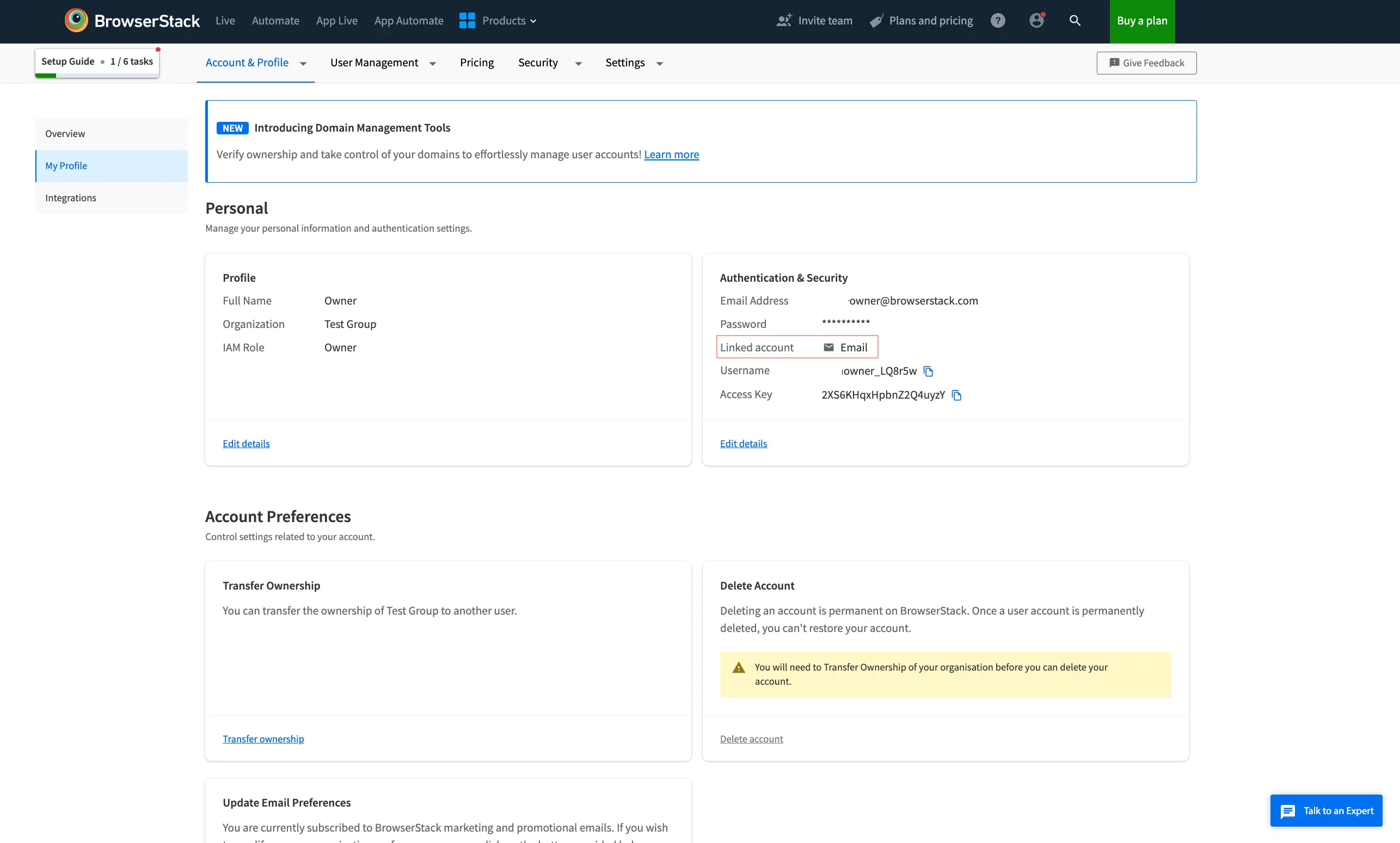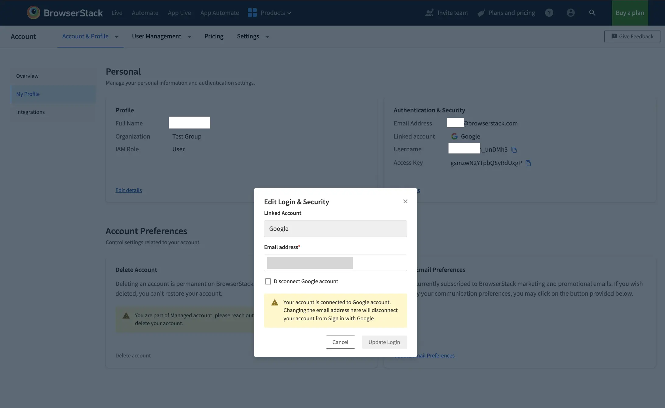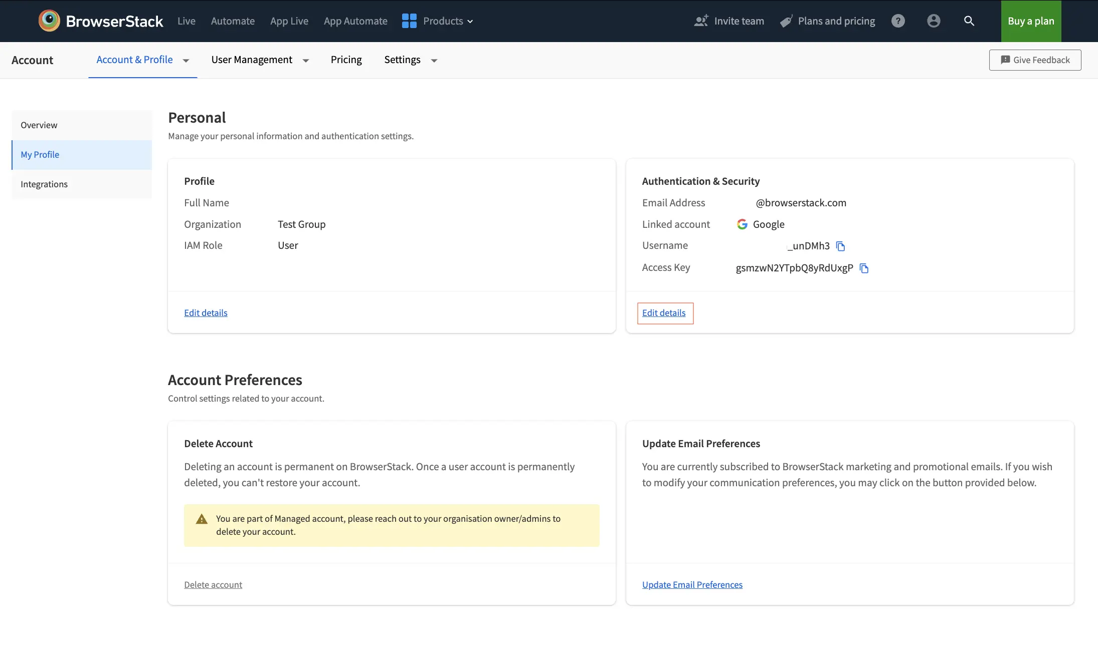 BrowserStack supports multiple authentication protocols to secure your account or your organization’s account.