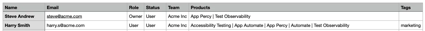 You can retrieve your organization’s user list in CSV format from the User Management tab.