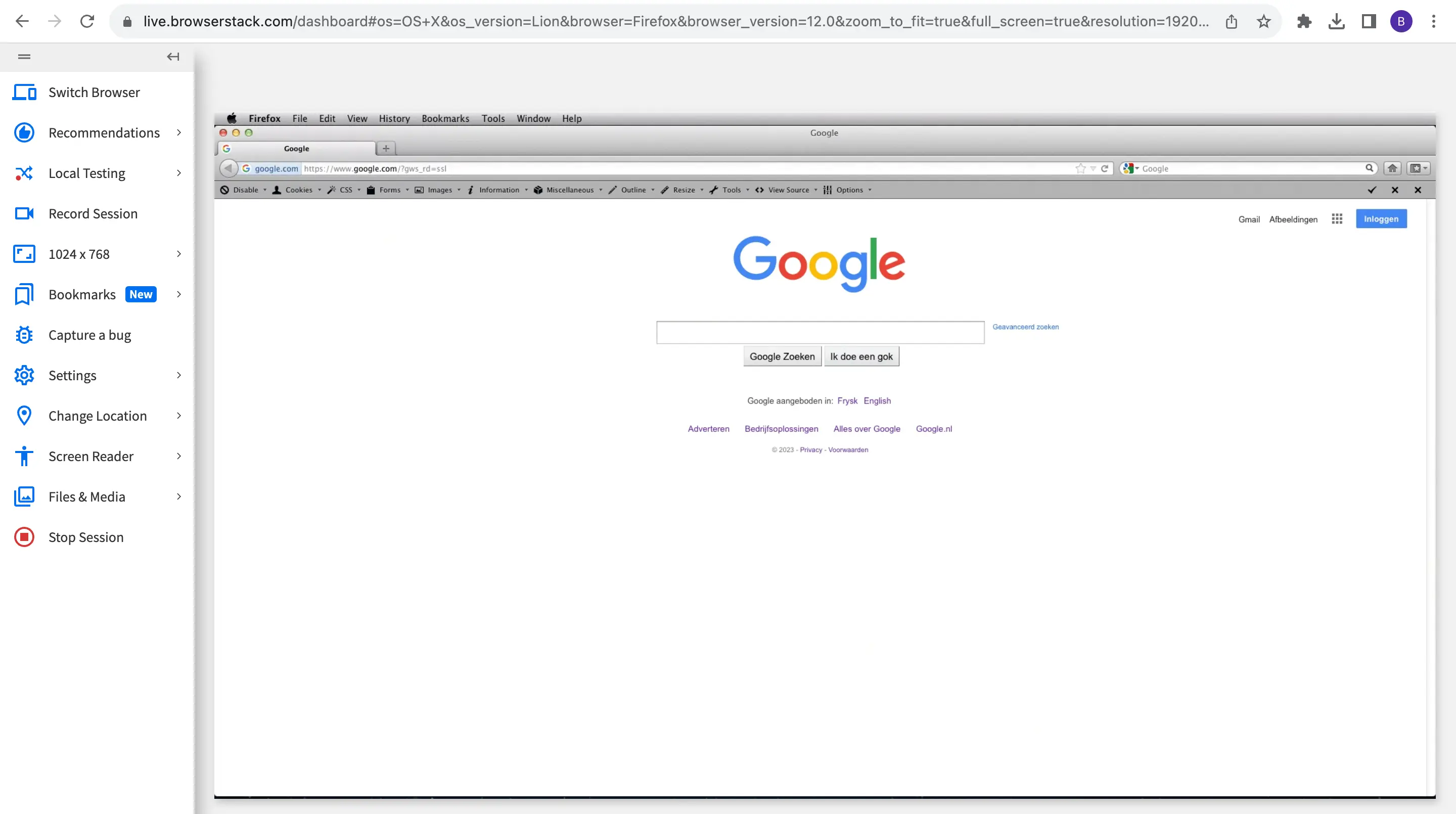 https://live.browserstack.com/dashboard#os=OS+X&os_version=lion&browser=Firefox&browser_version=12.0&scale_to_fit=true&url=www.google.com&resolution=1920x1080&speed=1&start=true