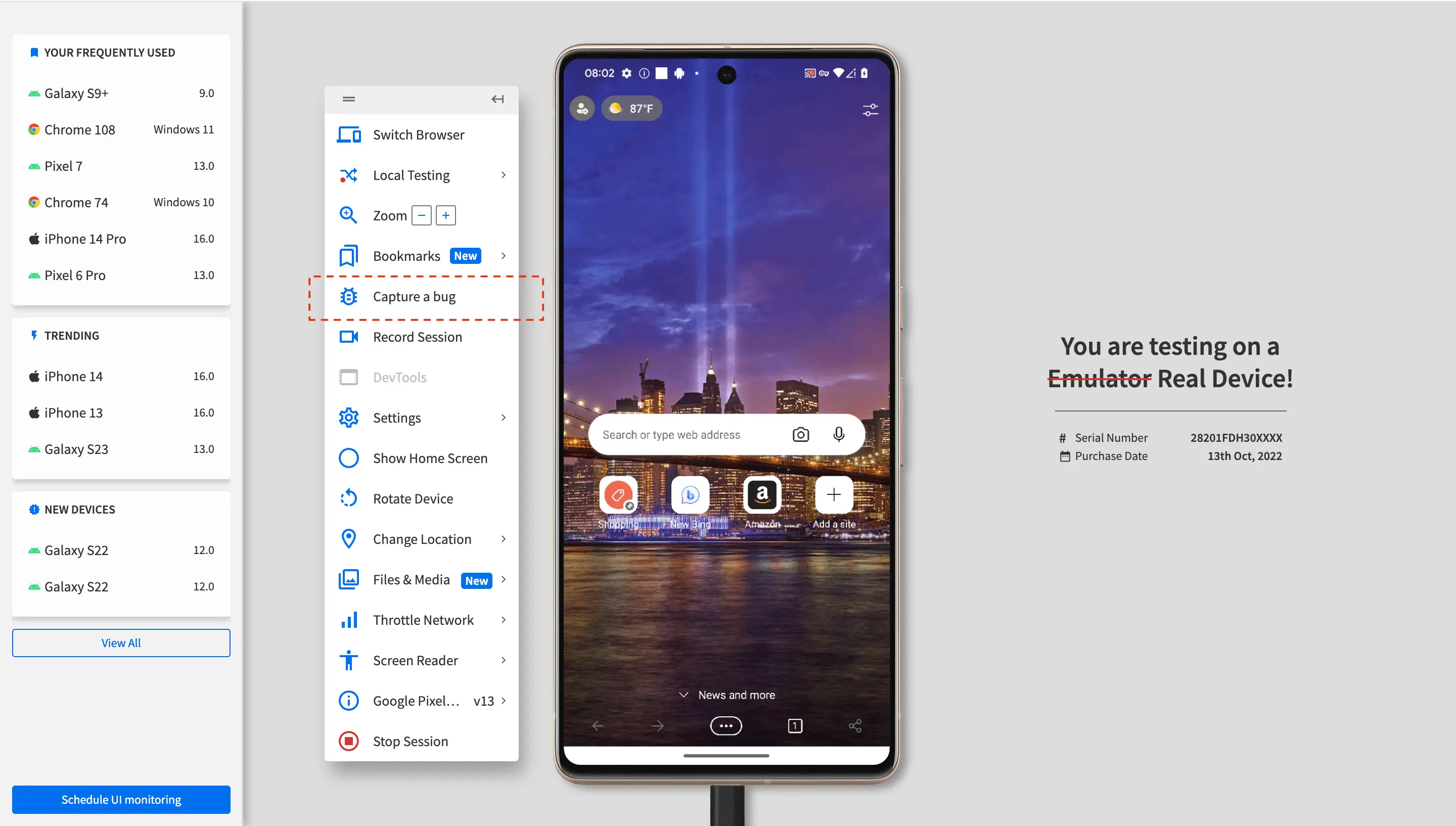 Step 1: Once you find a bug in your testing process, click on the Report Bug button in the toolbox to file the bug in Slack.