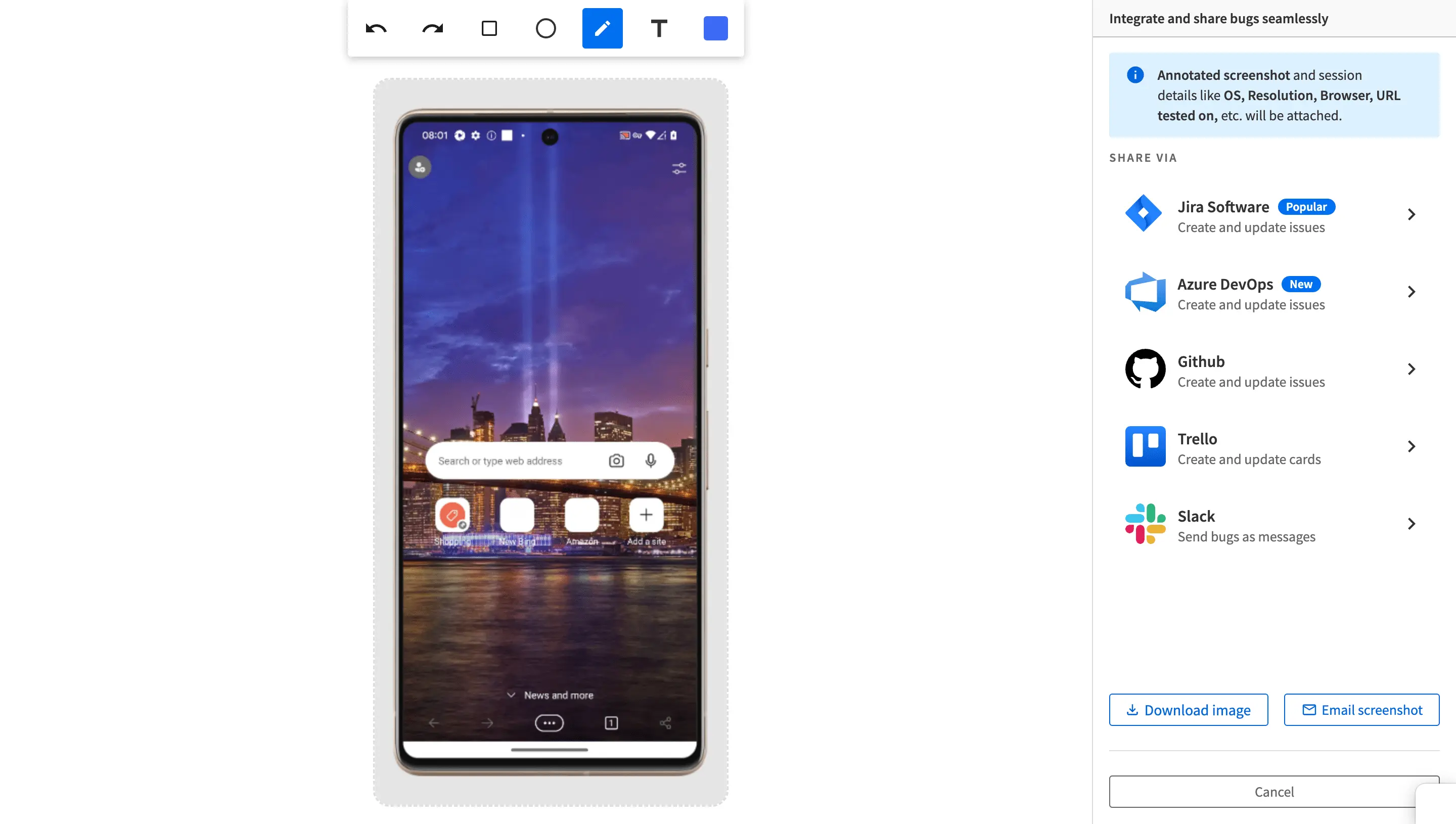 We additionally allow you to annotate screenshots and send the message to Slack.