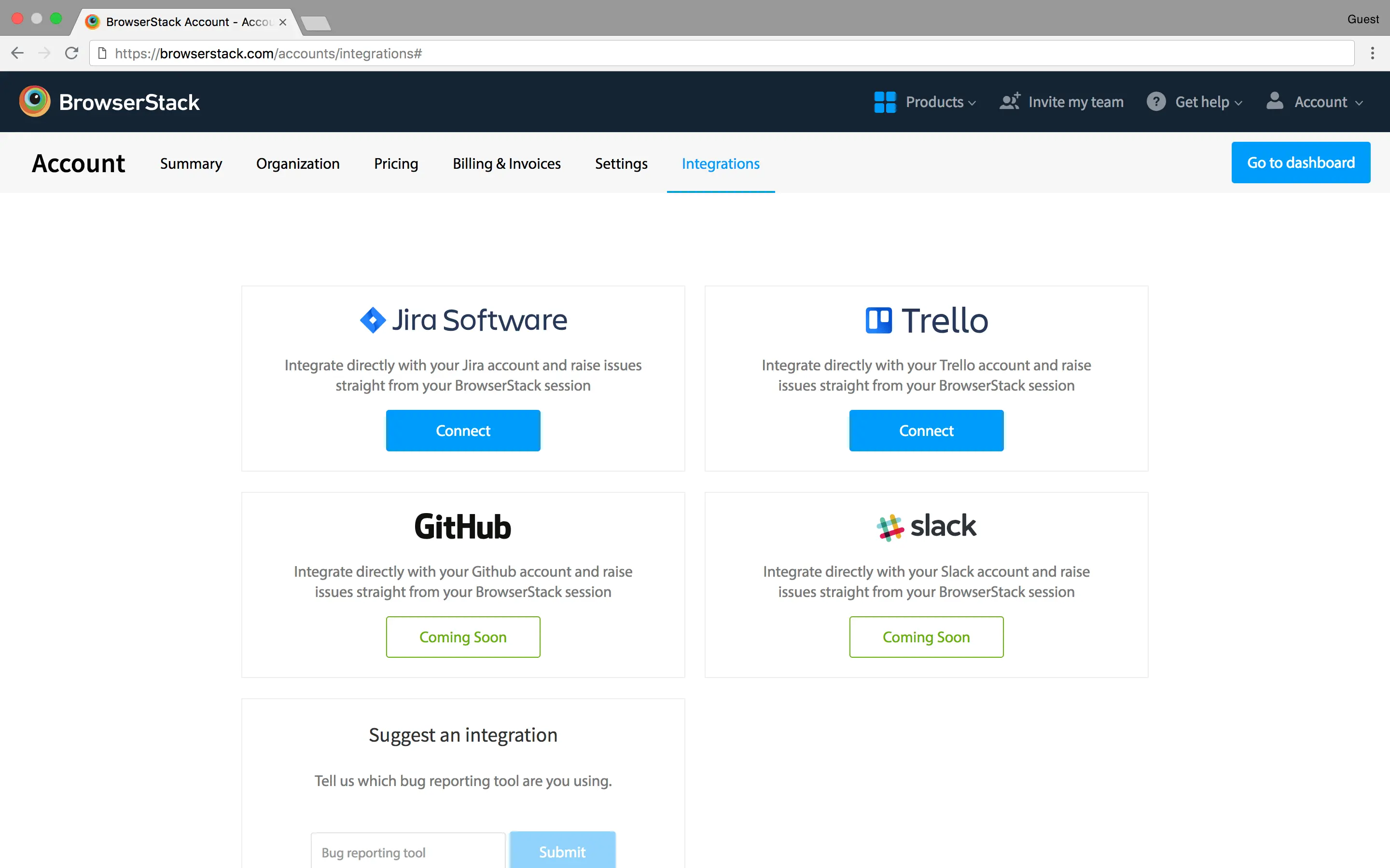 If you are using a bug filing tool which we do not support currently, you can suggest the same in the Suggestion Box available at the bottom of the Integrations page.