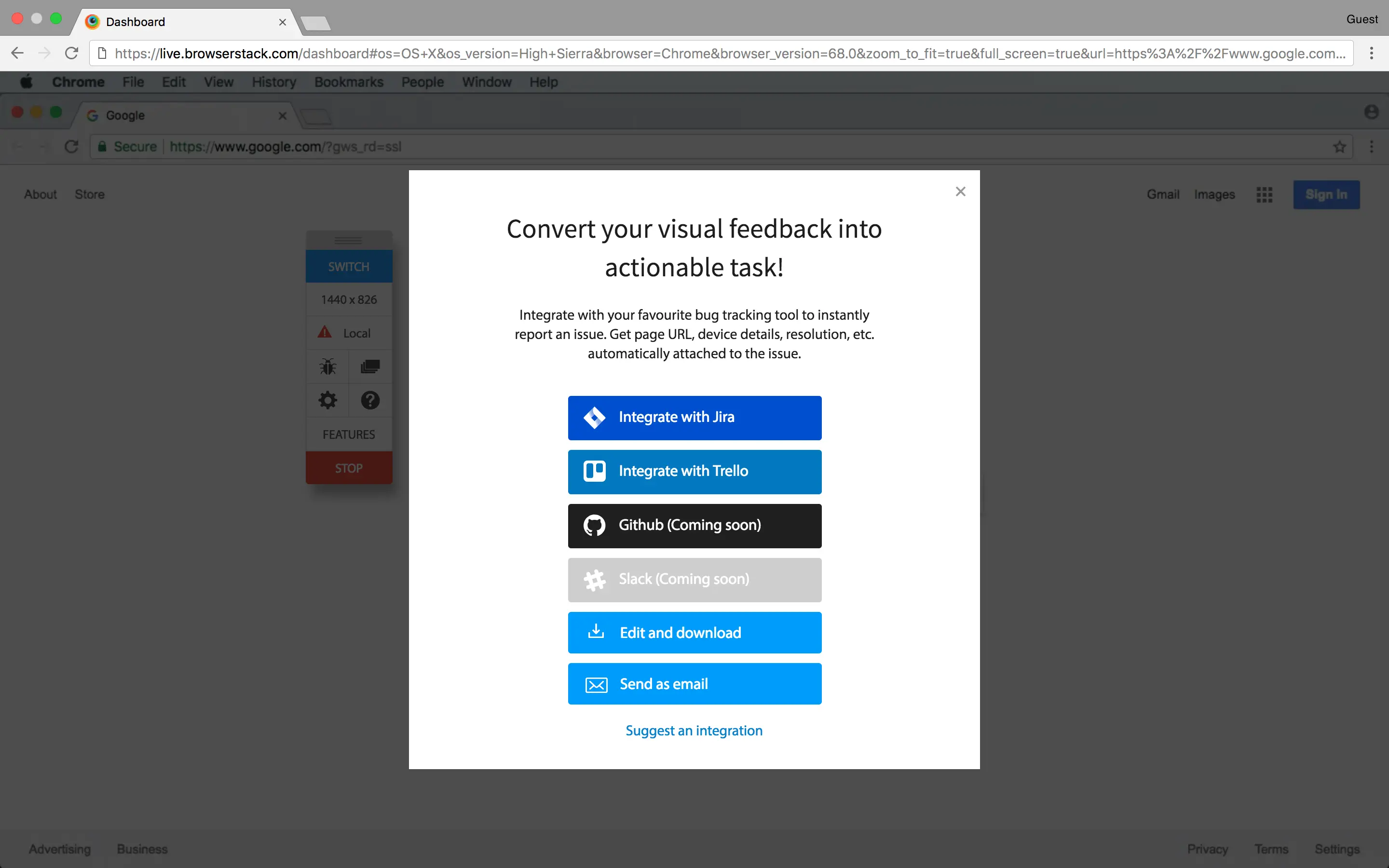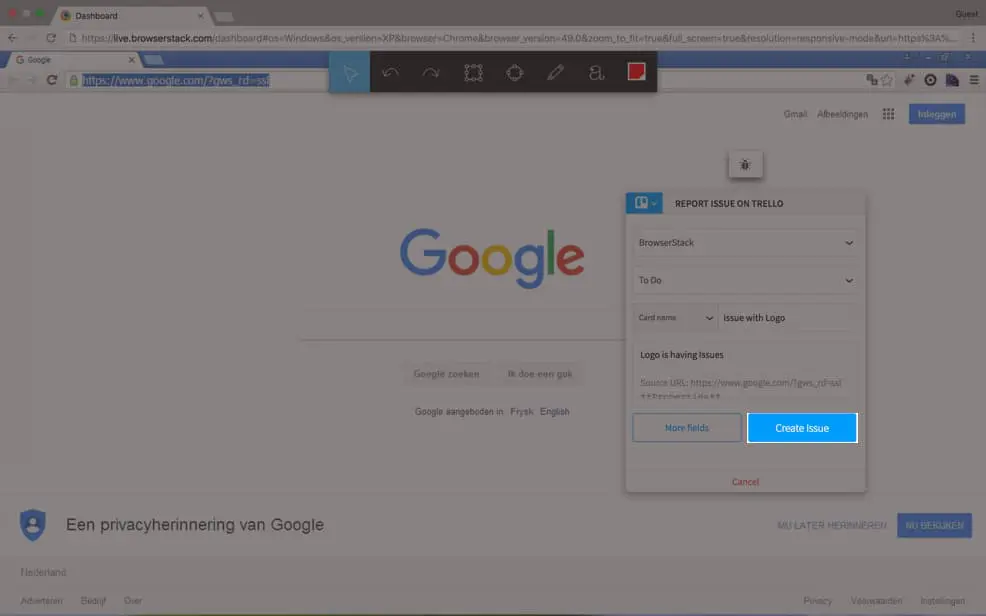 Integration of Trello in BrowserStack has been kept to a simple one-click process.