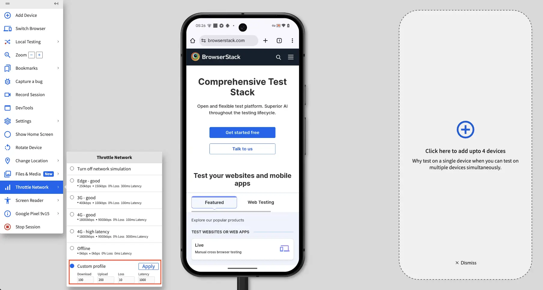 Learn how to use network simulation on BrowserStack real devices to test your websites and web apps.