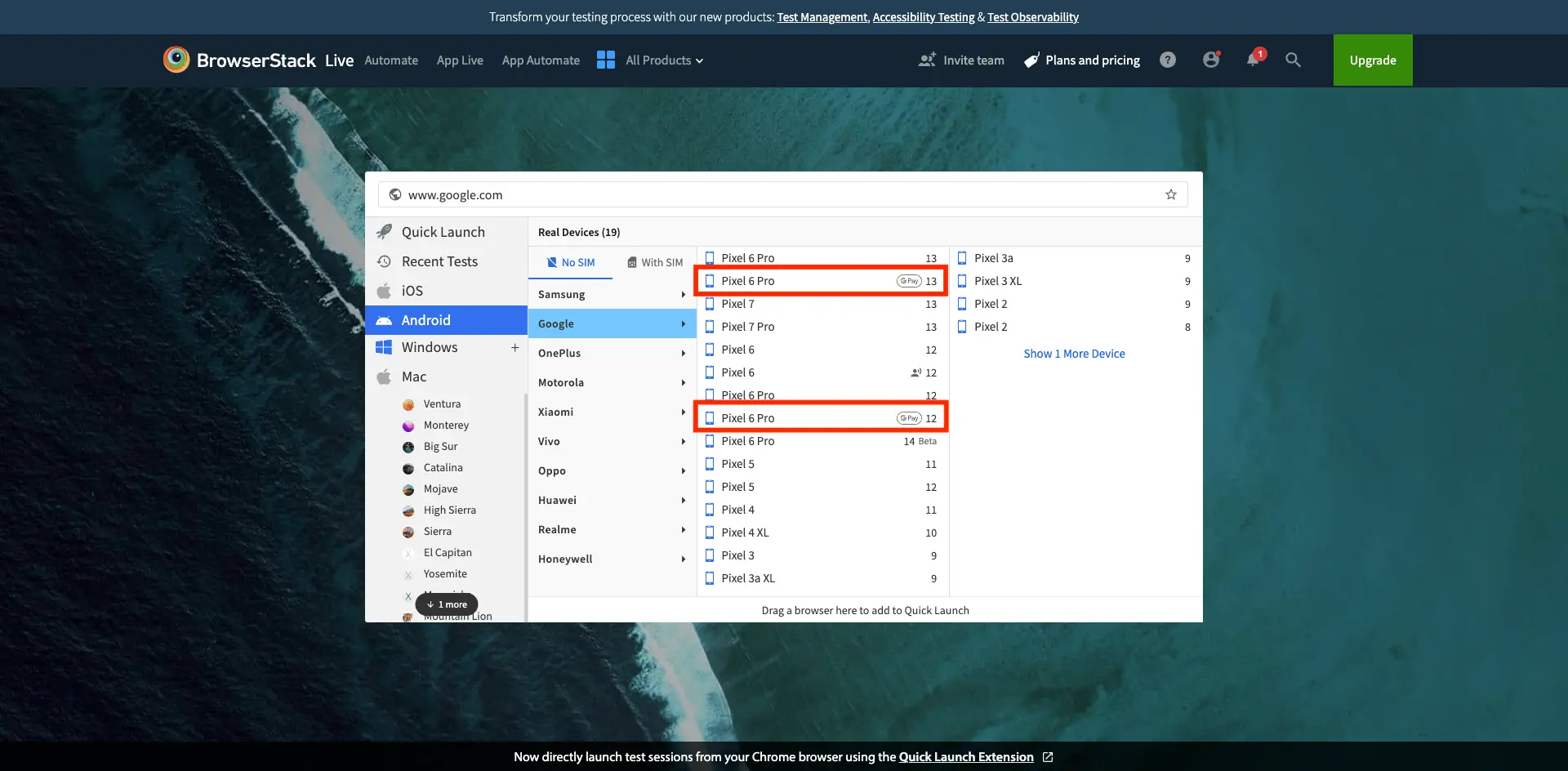 - Select an Android device with the Google Pay logo, then select the Chrome browser icon while hovering the mouse.