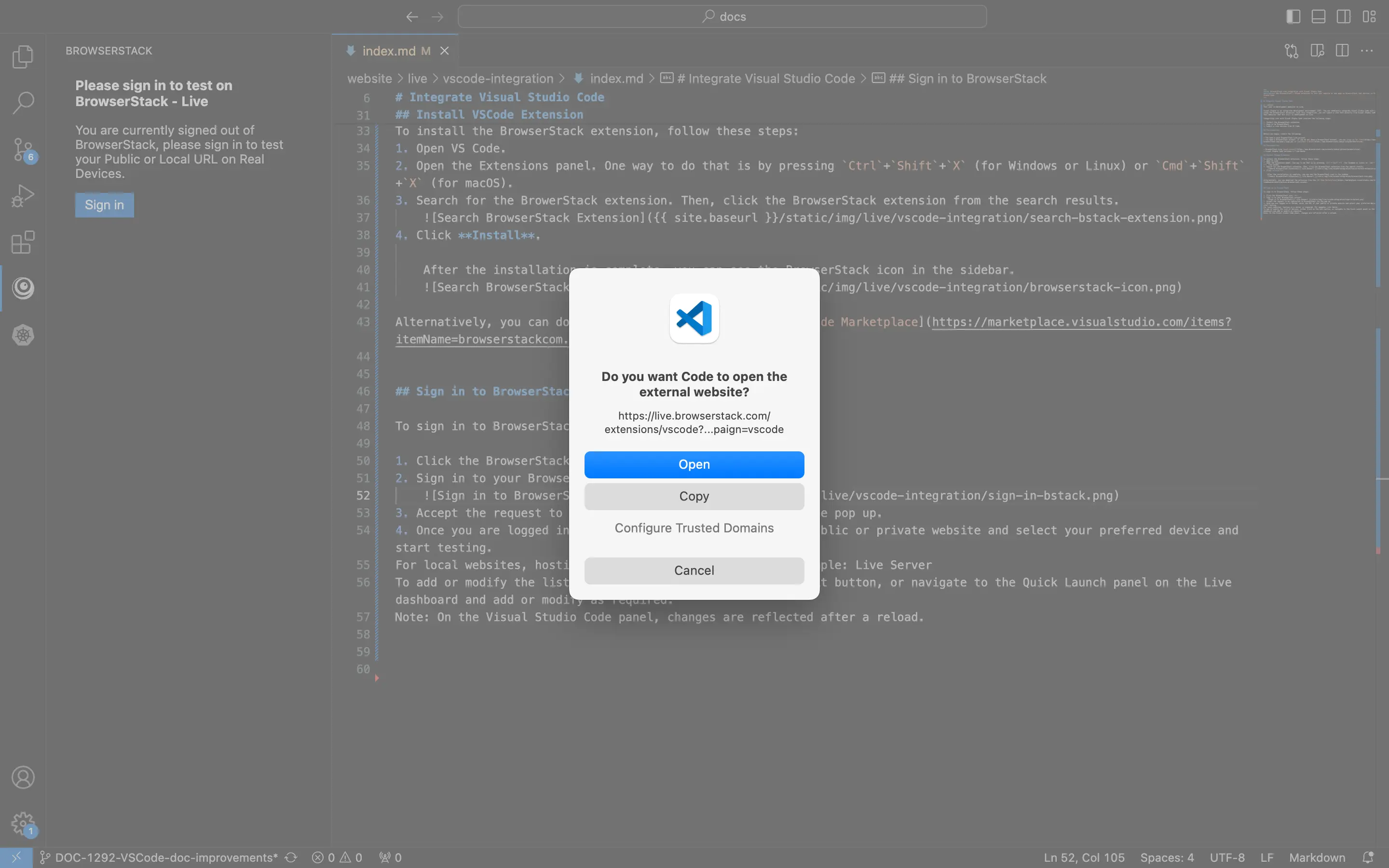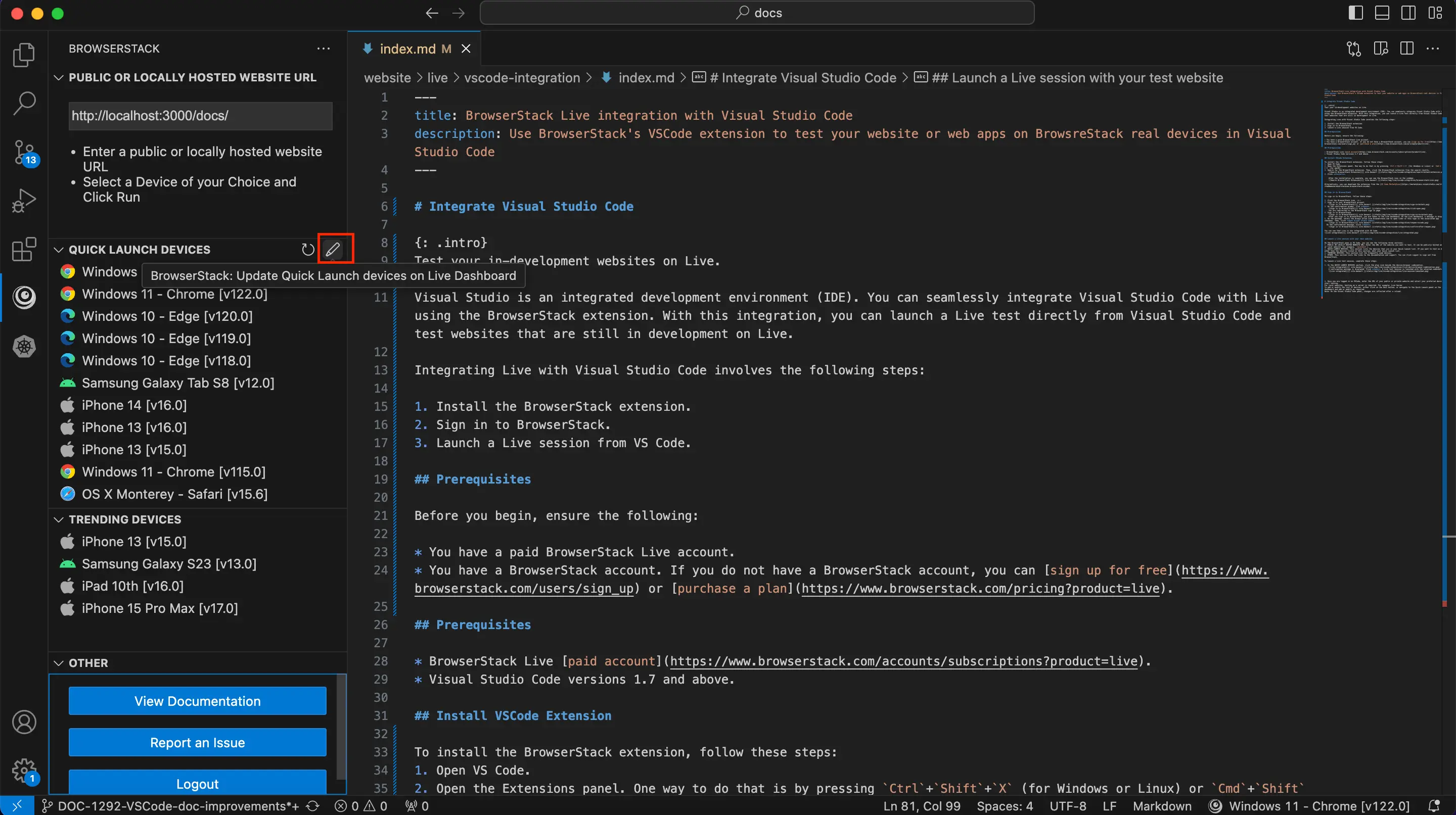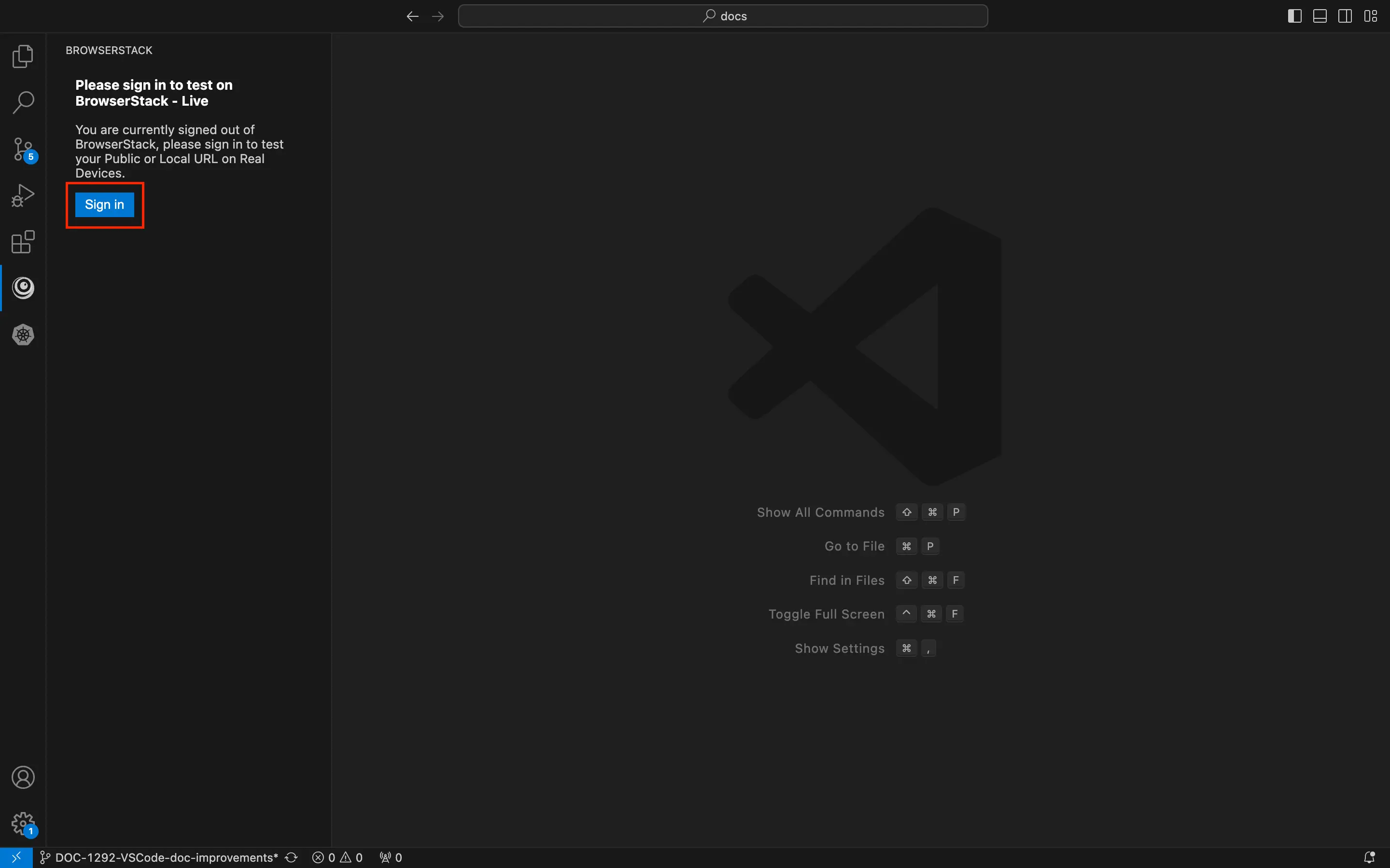 You have now installed the BrowserStack extension. Alternatively, you can download the extension from the VS Code Marketplace.
