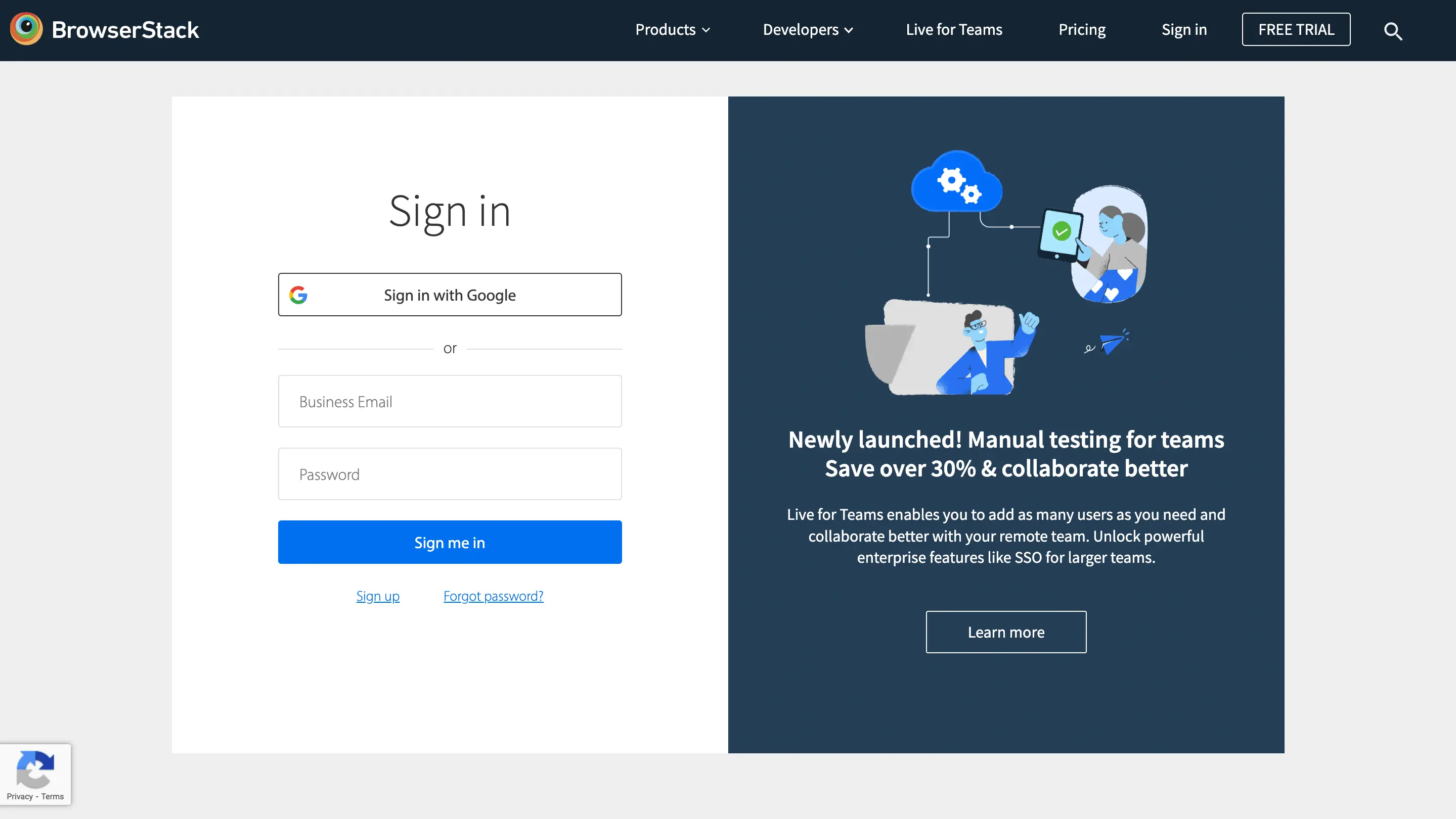 You are redirected to the BrowserStack sign-in page. - Sign in to your BrowserStack account.